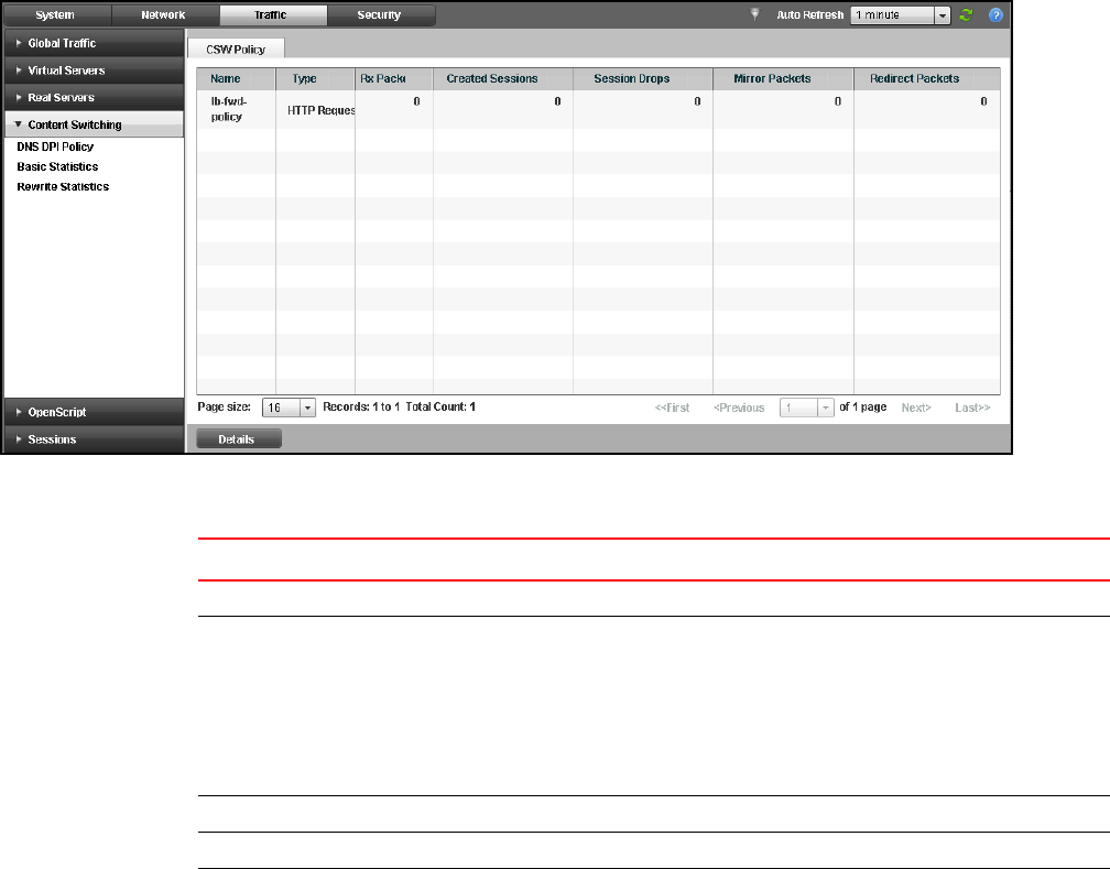 • HTTP response - Indicates the content switching policy is of