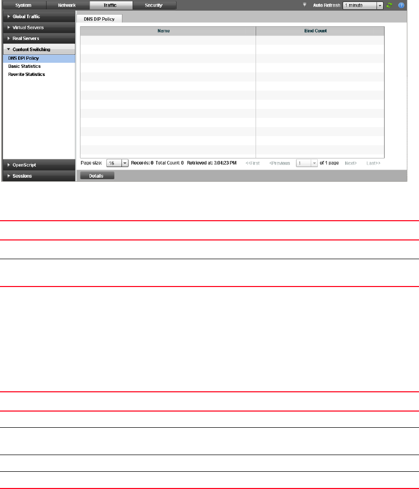 Bind Count Displays the number of DNS policies bound to the virtual server