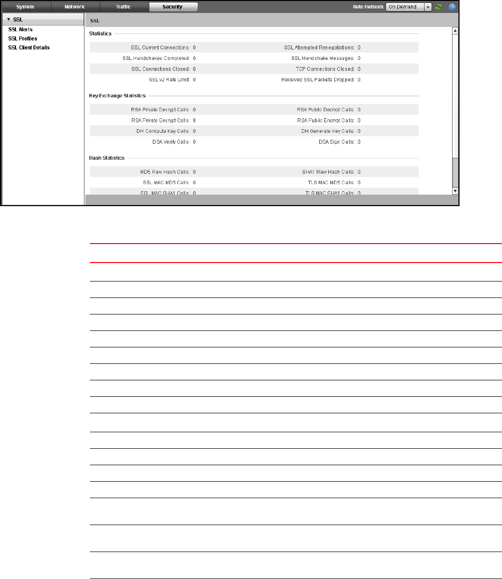 Received SSL Packets Dropped Displays the number of received SSL packets dropped by the device.