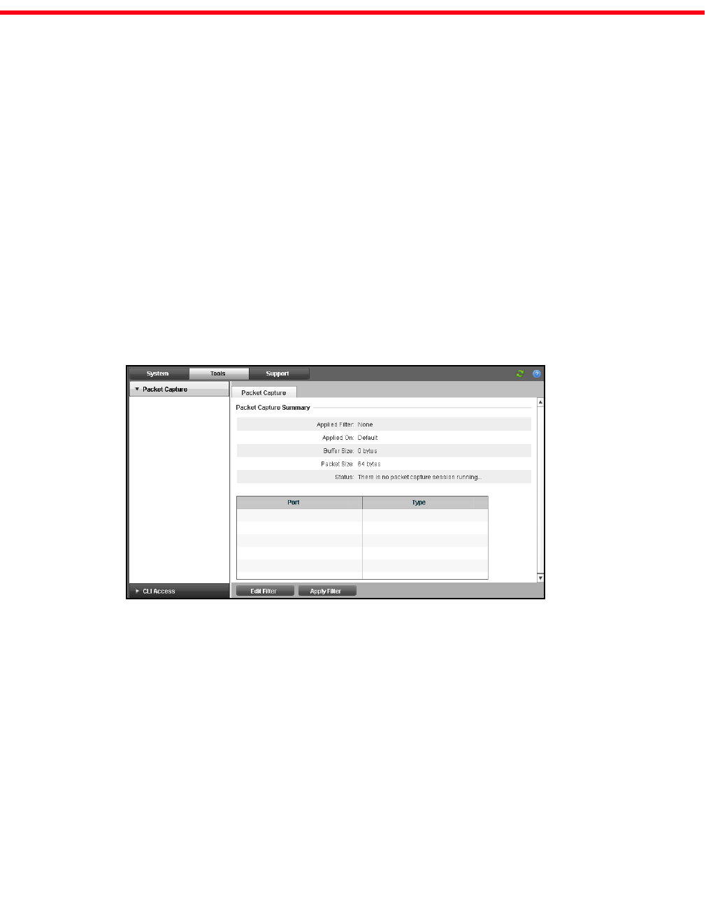 3. From the sidebar, select Packet Capture to display the Packet Capture Summary tab.