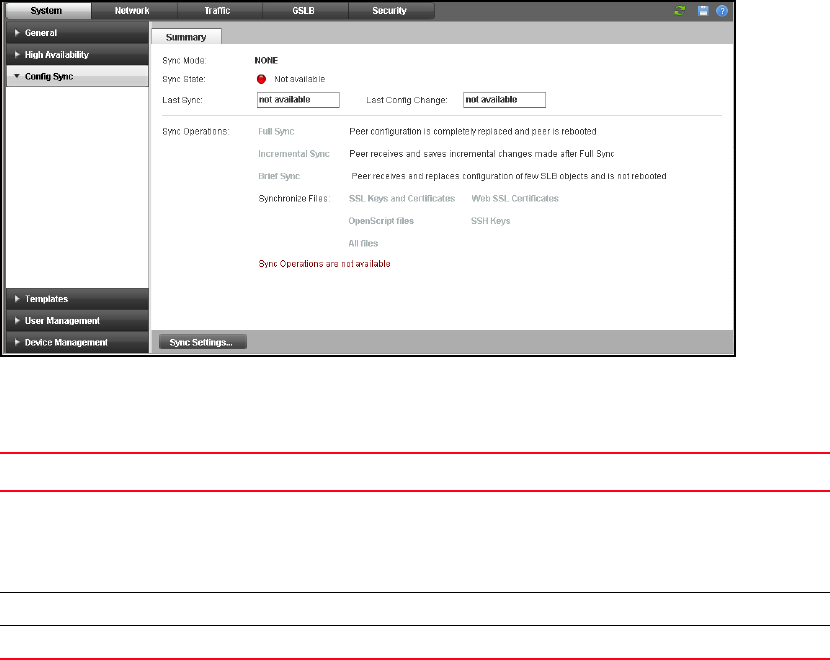By default, only the Summary page is displayed when you first select Config Sync. See