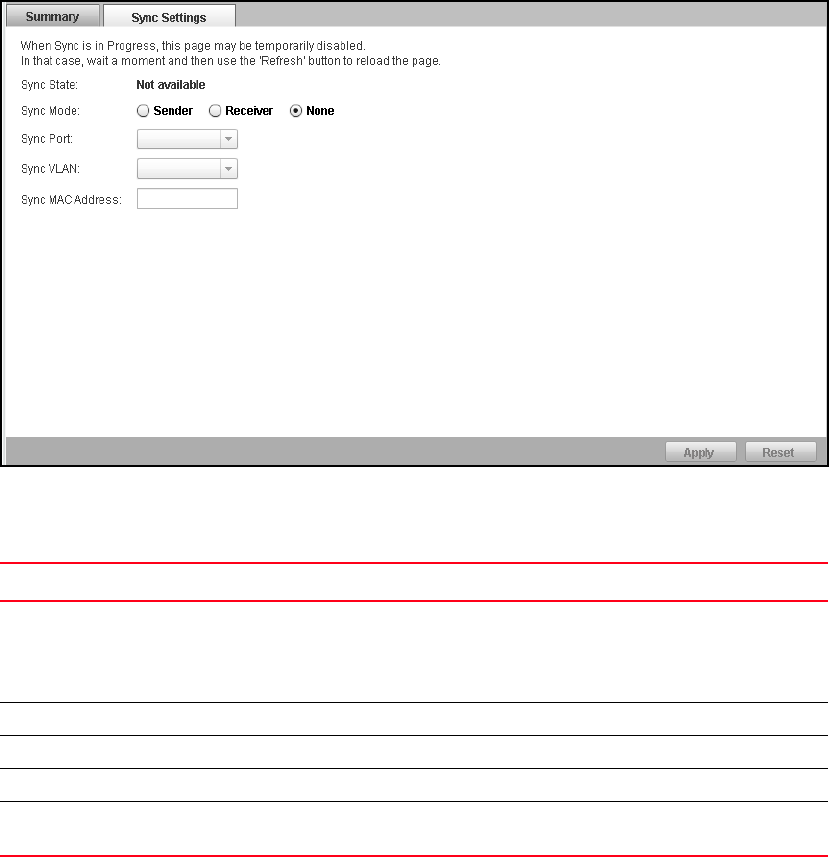Sync MAC Address MAC address used for synchronization. This value is required for devices configured as