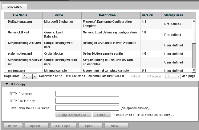 transfer succeeds, the Brocade Virtual ADX adds the template to the list.