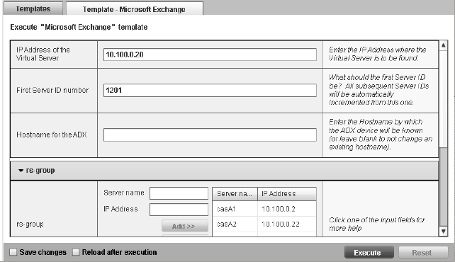7. Select Reload after execution if you want to reload the Brocade Virtual ADX after executing the
