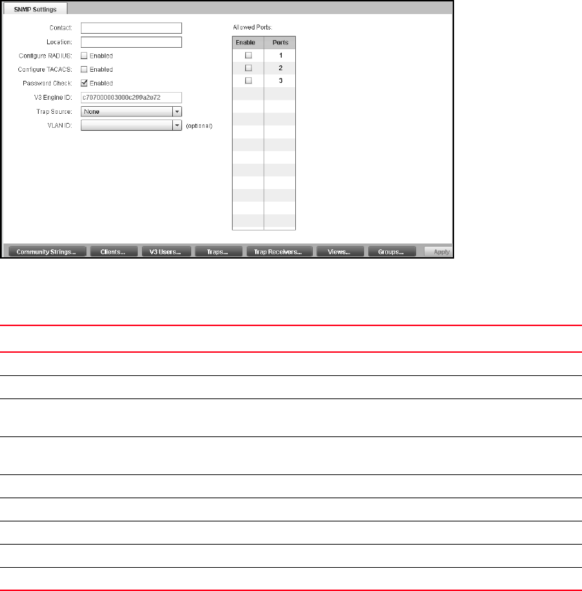3. Click SNMP in the sidebar sub-menu to display the SNMP controls.