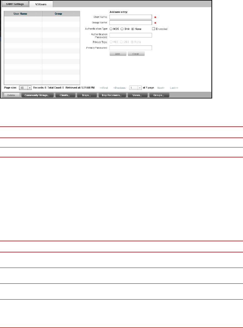 TABLE 13 SNMP V3 User tab fields