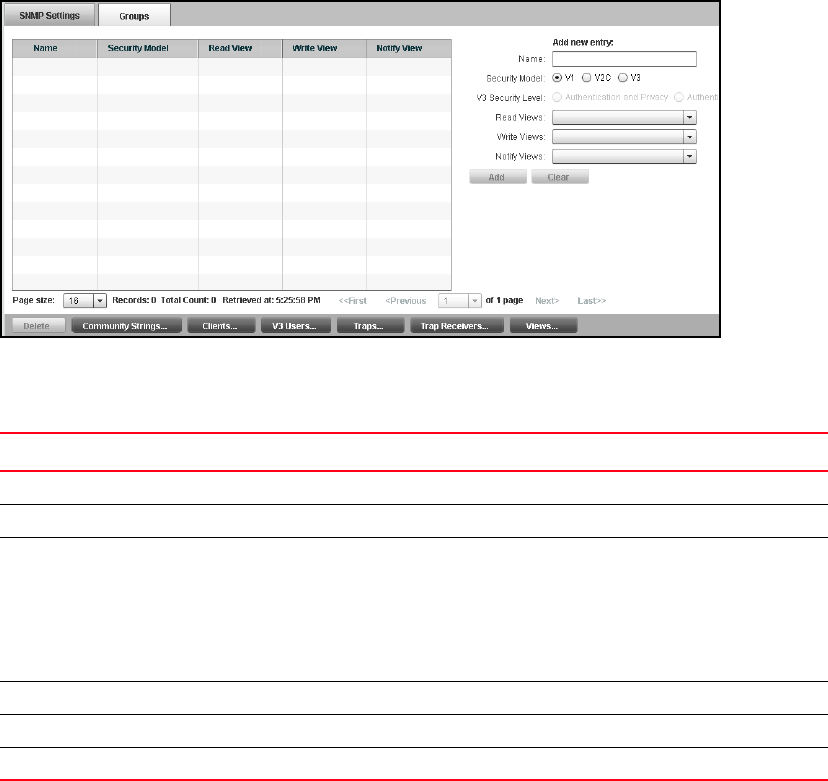 • Select one or more rows to enable the Delete button and delete groups from the table.