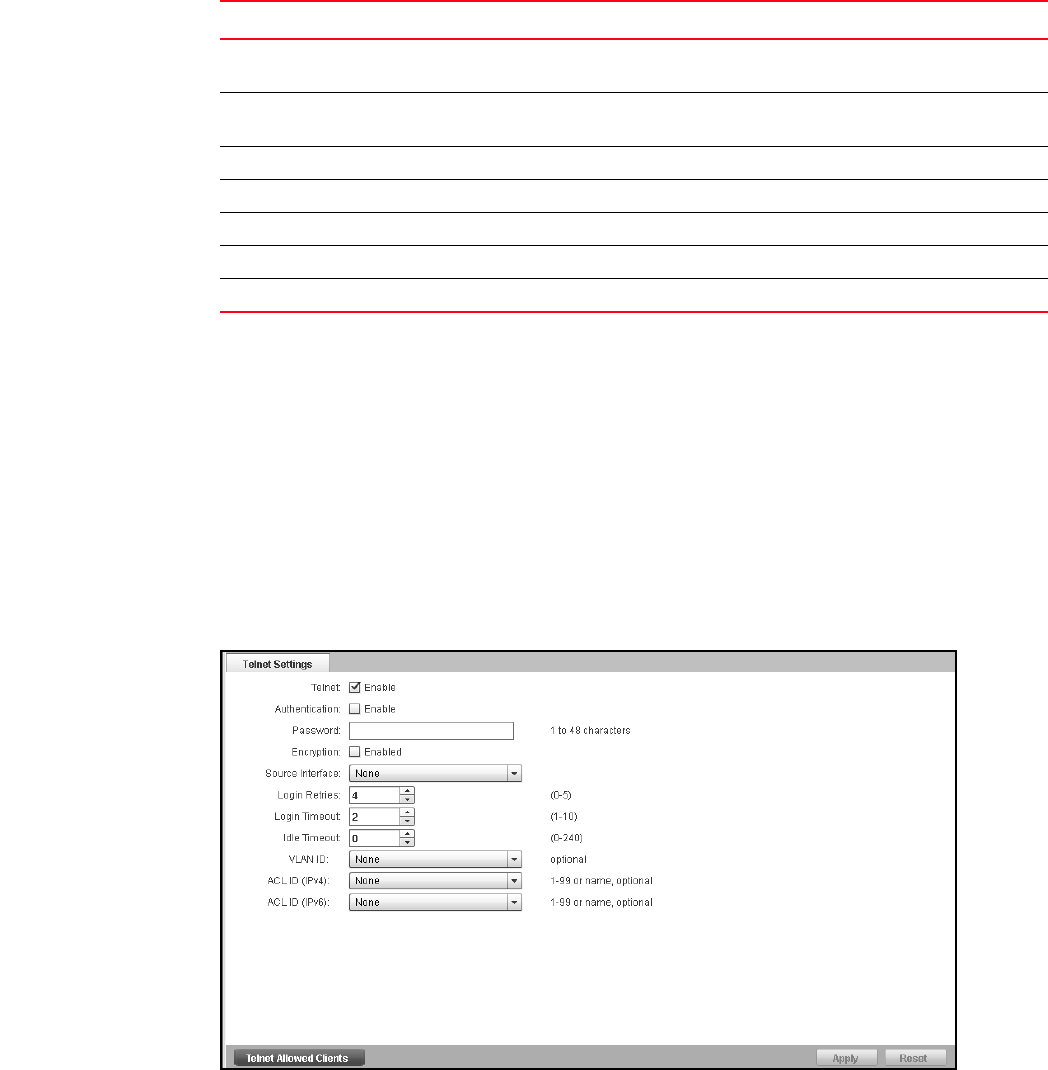 3. Click Telnet in the sidebar sub-menu to display the Telnet controls.