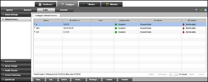 • Click Enable at the bottom of the Virtual Servers page to enable the virtual server.