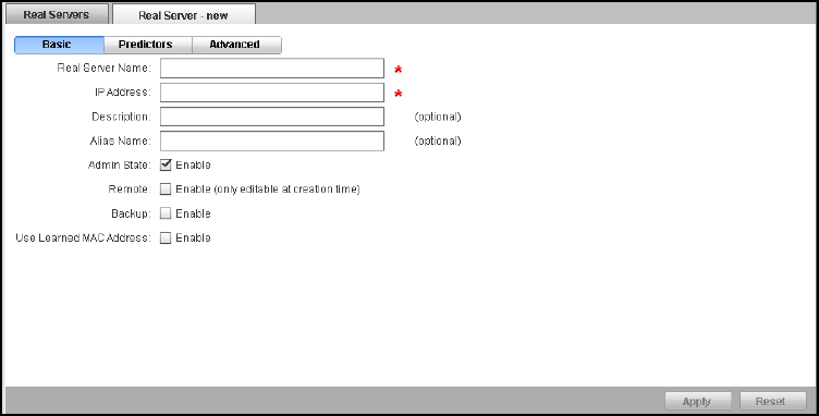 To apply SLB configuration, you must create a basic real server. After you create the basic real