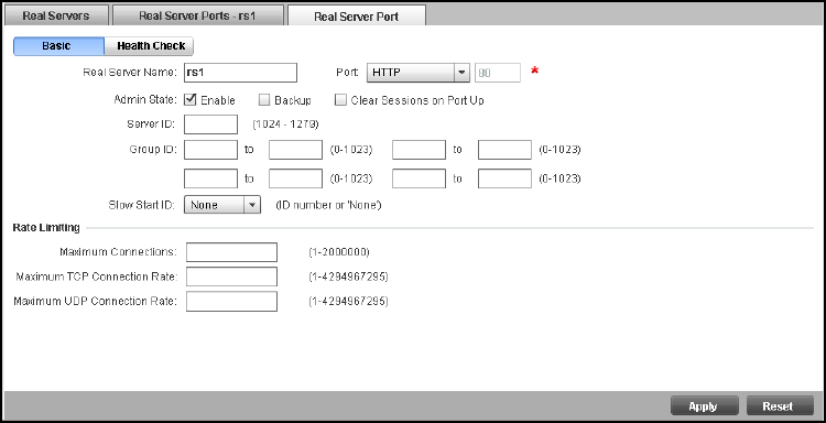 For more information on configuring real server ports, refer to the Brocade Virtual ADX Server Load