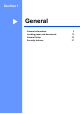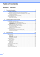 Table of Contents Section I 1 General General information 2 Using the documentation .......................................................................................2 Symbols and conventions used in the documentation ....................................2 Accessing the Software User’s Guide and Network User’s Guide ........................3 Viewing documentation ...................................................................................3 Accessing Brother Support (Windows®) ................