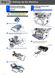 Step 1 Setting Up the Machine Install the Automatic 1 Document Feed (ADF) Support 2 1 Install the Drum Unit Assembly Open the front cover by pressing the front cover release button. Do NOT connect the interface cable. Connecting the interface cable is done when installing the driver. 1 Open the ADF cover. Front Cover Release Button ADF Cover 2 Front Cover Insert the tabs of ADF support into the holes of the ADF one side at a time. Tab Hole 2 Tab Unpack the drum unit assembly.