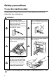 Safety precautions To use the machine safely Please refer to these instructions for later reference and before attempting any maintenance. WARNING There are high voltage electrodes inside the machine. Before you clean the machine, make sure you have unplugged the power cord from the electrical socket. Do not handle the plug with wet hands. Doing this might cause an electrical shock. To prevent injuries, be careful not to put your hands on the edge of the machine under the scanner cover.