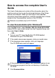 How to access the complete User’s Guide This User’s Guide does not contain all the information about the machine such as how to use the advanced features of the Printer, Scanner and Network. When you are ready to learn detailed information about these operations, read the complete User’s Guide located in the ‘Documentation’ section of the CD-ROM. Network is available only for DCP-315CN.