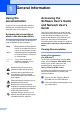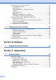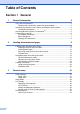 Table of Contents Section I 1 General General Information 2 Using the documentation .......................................................................................2 Symbols and conventions used in the documentation ....................................2 Accessing the Software User’s Guide and Network User’s Guide ........................2 Viewing Documentation...................................................................................2 Accessing Brother Support (For Windows®) .............