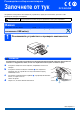 a b c 2 Заредете обикновена хартия размер A4 Издърпайте тавата за хартия извън устройството. Отворете капака на тавата за хартия. f Внимателно регулирайте страничните водачи на хартията към хартията с две ръце. g h i Затворете капака на тавата за хартия. Бавно избутайте тавата за хартия така, че напълно да влезе в устройството. Като придържате тавата за хартия на място, издърпайте подпората за хартия докато щракне, и разгънете капака на подпората.