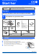 Hurtig installationsvejledning Start her DCP-585CW Læs denne Hurtig installationsvejledning for korrekt opsætning og installation, før du bruger maskinen. ADVARSEL Advarsler fortæller dig, hvordan du undgår personskade. VIGTIGT! Sæt IKKE USB-kablet i endnu (hvis du bruger et USB-kabel). 1 Pak maskinen ud, og kontroller delene 2 Medfølgende Blækpatroner [x4] Brugsanvisning Sort Gul Cyan Magenta (Ca.