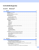 Avsnitt I ® Windows Utskrift Skanning ControlCenter3 Nettverksskanning (for modeller med innebygd nettverksstøtte) Fjernoppsett (ikke tilgjengelig for DCP-modeller, MFC-250C, MFC-290C og MFC-297C) Brother PC-FAX-programvare (bare MFC-modeller) PhotoCapture Center™ Brannmurinnstillinger (for nettverksbrukere) I 2 37 67 94 123 124 143 146