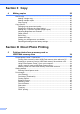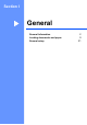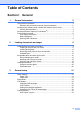 Table of Contents Section I 1 General General Information 2 Using the documentation ....................................................................................... 2 Symbols and conventions used in the documentation .................................... 2 Accessing the Software User’s Guide and Network User’s Guide ........................2 Viewing Documentation...................................................................................2 Accessing Brother Support (For Windows®) ...........