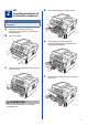 2 Het verpakkingsmateriaal uit de machine verwijderen d Til de elastische band op van de trommel. BELANGRIJK Steek het netsnoer nog NIET in het stopcontact. a b Verwijder de verpakkingstape van de buitenkant van de machine en de film die de glasplaat bedekt. Open de voorklep. e c Trek de papieren strook eruit om het beschermende materiaal te verwijderen (zie onderstaande afbeelding). Verwijder het siliciumpakket uit de binnenkant van de machine.