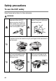 Important safety instructions 1 2 3 4 5 6 7 8 9 10 11 12 Read all of these instructions. Save them for later reference. Follow all warnings and instructions marked on the product. Before cleaning, turn off the DCP’s power switch and unplug the power cord from the wall outlet. Do not use liquid or aerosol cleaners. Use a damp cloth for cleaning. Do not use this product near water. Do not place this product on an unstable cart, stand, or table. The product may fall, causing serious damage to the product.