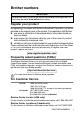 Brother fax back system (USA only) Brother has installed an easy-to-use fax back system, so you can get instant answers to common technical questions and product information for all Brother products. This system is available 24 hours a day, 7 days a week. You can use the system to send faxes to any fax machine. In USA only: 1-800-521-2846 Ordering accessories and supplies For best quality results use only genuine Brother accessories, which are available at most Brother retailers.
