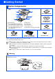 ■ Getting Started Carton Components 8 DCP 1 7 Quick Setup Guide 2 3 6 5 4 1. Control Panel 2. Face-down Output Tray Support Flap with Extension (Support Flap) 3. (For DCP-8040) Manual Feed Tray (For DCP-8045D) Multi-purpose Tray (MP Tray) ADF Support 4. Paper Tray 5. Front Cover 6. Power Switch 7. Document Cover 8.