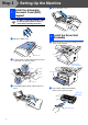 Step 1 Setting Up the Machine Install the Automatic 1 Document Feed (ADF) Support 4 Close the ADF cover. Do NOT connect the interface cable. Connecting the interface cable is done when installing the driver. 2 1 Open the ADF cover. 1 Install the Drum Unit Assembly Open the front cover by pressing the front cover release button. ADF Cover 2 Insert the tabs of ADF support into the holes of the ADF one side at a time.
