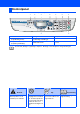 Kontrolpanel DCP-8040 og DCP-8045D har tilsvarende taster på kontrolpanelet. 1 2 3 4 5 6 9 7 8 1. Print-taster 4. Navigationstaster 7. Stop/Exit 2. Status LED (Light-Emitting Diode) 5. Kopitaster (midlertidige indstillinger) 8. Start 3. 5-linjers LCD (Liquid Crystal Display) 6. Numeriske taster 9. Scan Du kan finde yderligere oplysninger i Kapitel 1 "Oversigt over kontrolpanel" i brugsanvisningen. Advarsel Angiver advarsler, der skal respekteres for at forhindre personskader.