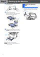 Step 1 3 Setting Up the Machine Fan the stack of paper well to avoid paper jams and misfeeds. 4 1 Release the Scanner Lock Push the lever up to unlock the scanner. (The gray scanner lock lever is located at the back left under side of the document cover.) Scanner Lock Lever 4 Put paper in the paper tray. Check that the paper is flat in the tray and below the maximum paper mark. Up to here. 5 Put the paper tray firmly back in the DCP and unfold the Support flap before you use the DCP.