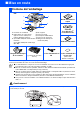 ■ Mise en route Contenu de l'emballage 8 DCP 1 7 Guide d'installation rapide 2 3 6 5 4 4. Bac à papier 5. Couvercle avant (impression non visible) avec 6. Interrupteur d'alimentation 7. Couvercle de document rallonge (Rabat de support) 3. (Pour DCP-8040) Bac d'introduction 8. Chargeur automatique de 1. Panneau de commande 2.