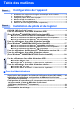 Configuration de l’appareil Windows® USB Étape 1 Version C USB Windows® Réseau Réseau Pour obtenir le pilote le plus récent et trouver les meilleures solutions à vos questions ou problèmes d'ordre technique, accédez au Centre de solutions Brother directement depuis le pilote ou visitez le site Web http://solutions.brother.com Conservez le “Guide de configuration rapide”, le Guide de l'utilisateur et le CD-ROM fourni dans un lieu facile d'accès pour une consultation rapide à tout moment.