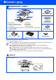 ■ Komme i gang Komponenter i esken 8 DCP 1 7 Hurtigoppsettguide 2 3 6 5 4 1. Kontrollpanel 2. Klaff på utgangsstøtten (med utvidelse) for dokumenter med forsiden ned 3. (For DCP-8040) Manuelt matebrett (For DCP-8045D) Multifunksjonebrett Dokumentmaterstøtte 4. Papirbrett 5. Frontdeksel 6. Strømbryter 7. Dokumentdeksel 8.