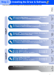 Step 2 Installing the Driver & Software Supplied CD-ROM (MFL-Pro Suite) You can find a variety of information on the CD-ROM. Install Software You can install printer, scanner drivers and the various utility items, including PaperPort® and OmniPage® OCR. On-Line Registration You will be pointed to the Brother Product Registration Web Page for quick registration of your DCP (Internet access required). Documentation View the User’s Guide and other documentation in PDF format.