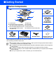 ■ Getting Started Carton Components 8 DCP 1 7 Quick Setup Guide 2 3 6 5 4 4. Paper Tray 5. Front Cover Flap with Extension (Support Flap) 6. Power Switch 3. (For DCP-8040) Manual Feed Tray 7. Document Cover (For DCP-8045D) Multi-purpose 8. Automatic Document Feeder (ADF) 1. Control Panel 2.