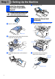 Step 1 Setting Up the Machine Install the Automatic 1 Document Feed (ADF) Support 4 Close the ADF cover. Do NOT connect the interface cable. Connecting the interface cable is done when installing the driver. 2 1 1 Open the ADF cover. Install the Drum Unit Assembly Open the front cover by pressing the front cover release button. ADF Cover 2 Insert the tabs of ADF support into the holes of the ADF one side at a time.