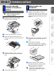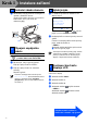 Krok 1 Instalace zařízení 3 Uvolnění zámku skeneru 1 Stisknutím páčky (1) směrem uvedeným na obrázku odemkněte skener. (Šedá páčka zámku skeneru se nachází na zadní straně vlevo pod víkem pro dokumenty (2).) 5 Výběr jazyka 1 Po stisknutí spouštěcího tlačítka se na displeji objeví: Select Language a English Français b Deutsch (2) Select ab & OK Stisknutím tlačítka nebo vyberte jazyk a potom stiskněte tlačítko OK.