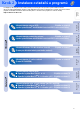 Instalace zařízení Windows® + rozhraní USB Krok 1 + rozhraní USB + sít’ Uschovejte tento "Stručný návod k obsluze", Příručku uživatele a dodaný CD-ROM na vhodném místě pro snadné konzultace. Windows® + sít’ Instalace je dokončena! Instalace ovladačů a programů Instalace ovladačů a programů Macintosh® Krok 2 Windows NT® 4.