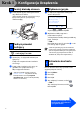 Krok 1 Konfiguracja Urządzenia 3 Zwolnij blokadę skanera 1 Pchnij drążek (1) w pokazanym kierunku, aby odblokować skaner. (Szary drążek skanera jest umieszczony z tyłu po lewej stronie, pod pokrywą dokumentu (2).) 5 Wybieranie języka 1 Po włączeniu wyłącznika zasilającego ekran LCD pokaże: Select Language a English Français b Deutsch (2) Select ab & OK Naciśnij lub w celu wybrania używanego języka i naciśnij OK.