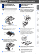 Pasul 1 Instalarea și configurarea echipamentului 3 1 Eliberaţi blocajul scanerului 5 Împingeţi maneta (1) în direcţia indicată pentru a debloca scanerul. (Maneta gri a blocajului scanerului se găsește în partea din stânga spate, sub capacul documentului (2).) (2) Setarea contrastului LCD Puteţi schimba contrastul pentru ca LCD-ul să pară mai luminos sau mai întunecat. 1 2 3 4 Apăsaţi Menu (Meniu). Apăsaţi 1. Apăsaţi 6. Apăsaţi pentru a mări contrastul. —SAU— Apăsaţi pentru a micșora contrastul.
