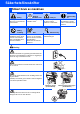 ■ Komma igång Förpackningens innehåll 1 2 8 7 Snabbguide 3 4 6 CD-ROM-skiva För Windows® För Macintosh® 5 1. Dokumentmatare (ADF) 2. Kontrollpanel 3. Utmatningsfack med textsidan nedåt och stödflik 5. Pappersfack 6. Strömbrytare 7. Maskinens lock 8. Stödflik för dokumentutmatning Nätkablar För Danmark För övriga 4. Den främre luckan Trumma (inklusive tonerkassett) Förpackningens innehåll kan variera beroende på inköpsland. Spara förpackningen och allt förpackningsmaterial.