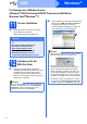 USB c Wählen Sie Lokaler Anschluss und klicken Sie dann auf Weiter. Die Installation wird fortgesetzt. Windows® b Schließen Sie das USB-Kabel am USBAnschluss ( ) des Gerätes an. Der USBAnschluss befindet sich wie unten gezeigt im Inneren des Gerätes. DCP-J515W USB LAN USB (DCP-J515W) DCP-J715W Führen Sie das USB-Kabel - wie gezeigt vorsichtig durch die Vertiefung zur Rückseite des Gerätes. Schließen Sie das Kabel dann am Computer an.