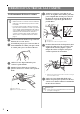 h Alignez le fil supérieur et le fil de la canette, puis passez-les sous le pied-de-biche vers l’arrière de la machine. i Mettez la machine sous tension. j Sélectionnez un point. m Tout en maintenant légèrement les fils à l’arrière de la machine, tournez le volant pour refaire passer l’aiguille dans le trou percé, puis abaissez le levier du pied-de-biche. n Sélectionnez une vitesse lente, maintenez doucement les fils derrière le pied de biche et commencez à coudre.