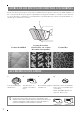 ACERCA DE LOS EFECTOS DECORATIVOS CON BOBINAS Puede crear diseños, para proporcionar un aspecto tridimensional a la superficie de la tela, enrollando la bobina con hilo o cinta pesados de un grosor superior al permitido para la aguja de la máquina y cosiendo en el revés de la tela. Los efectos decorativos con bobinas se crean utilizando la caja de la bobina (gris) especial y la tapa de bobina con salientes que se suministran con este kit.