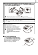 3 4 Remove the backing paper and feed the edge of the cleaning sheet into the printing unit until it reaches the area shown by an arrow in the diagram below. • Insert the sheet without removing the part of the sheet. • Check that the printing surface of the cleaning sheet is facing upwards. 5 Close the DK Roll compartment cover and press the ON/OFF button ( ) to turn the Brother QL-700 on. 6 Press the Feed button for more than one second. Feed button The roller spins by 4" (10 cm).