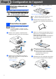 Étape 1 Configuration de l’appareil Retrait des éléments de 1 protection 1 3 Retirez le support à papier et dépliez son rabat. Support à papier Retirez le ruban et le papier de protection. NE branchez PAS le câble USB. La connexion du câble USB s'effectue lors de l'installation du pilote. Rabat de support à papier Utilisez le rabat de support à papier pour une feuille au format Lettre, Légal et A4. 4 Déramez bien les pages pour éviter les bourrages et les mauvais entraînements du papier.