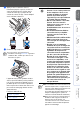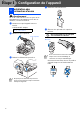 Étape 1 Configuration de l’appareil Installation des 4 cartouches d'encre 4 Retirez la cartouche d'encre. 5 Enlevez avec précaution le capuchon inférieur. Avertissement En cas de contact de l'encre avec les yeux, rincez immédiatement et abondamment à l'eau. En cas d'irritation, consultez un médecin. 1 Assurez-vous que l'appareil est sous tension. L’afficheur ACL indique: Vérif cartouche 2 Ouvrez le capot supérieur. NE touchez PAS la zone indiquée sur l’illustration ci-dessus.