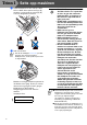 Trinn 1 Sette opp maskinen 6 Trykk blekkpatronene inn i rett spor til du hører et klikk, slik at patronens farge (A) stemmer overens med sporets farge (B), som vist i diagrammet nedenfor. (B) (A) OK 7 Lukk øvre deksel. Hvis du får meldingen Installer på LCDskjermen etter at du har installert blekkpatronene, må du sjekke at patronene er riktig installert. Maskinen vil rengjøre blekkrørsystemet før det brukes første gang.