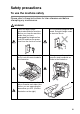 Safety precautions To use the machine safely Please refer to these instructions for later reference and before attempting any maintenance. WARNING There are high voltage electrodes inside the machine. Before you clean the machine, make sure you have unplugged the telephone line cord first and then the power cord from the electrical socket. Do not handle the plug with wet hands. Doing this might cause an electrical shock. To prevent injuries, be careful not to touch the area shaded in the illustration.